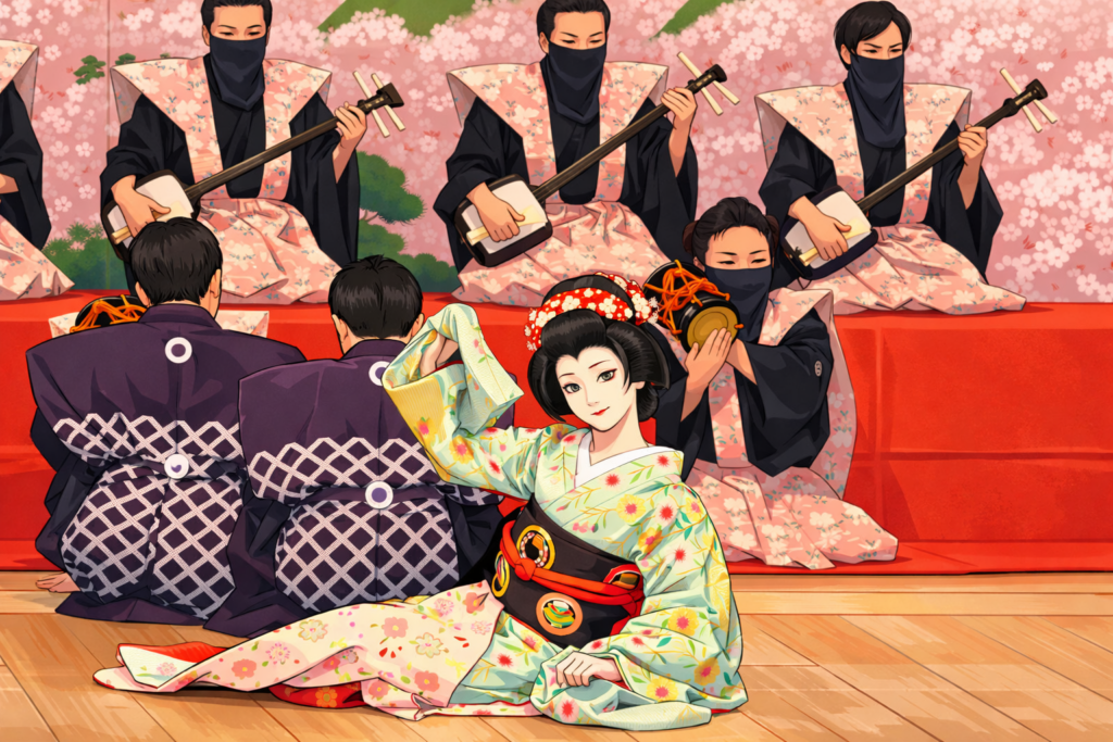 主人公が最初に唄の稽古をする「喜撰」も歌舞伎舞踊「六歌仙容彩(ろっかせんすがたのいろどり)」の一幕でよく歌舞伎の舞台や日舞の会で上演されます。