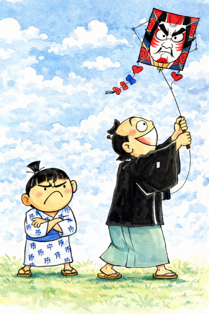 父「あぁもう分かった、分かったよ、こんちくしょう。おい!凧屋!こんなところに店出しやがって。小さい凧一つくれ。」