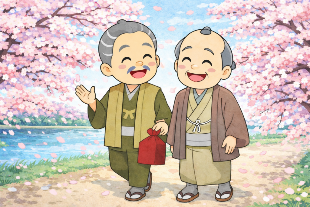 おたいこ医者・玄伯をお供に、これまた花見にやってきている。