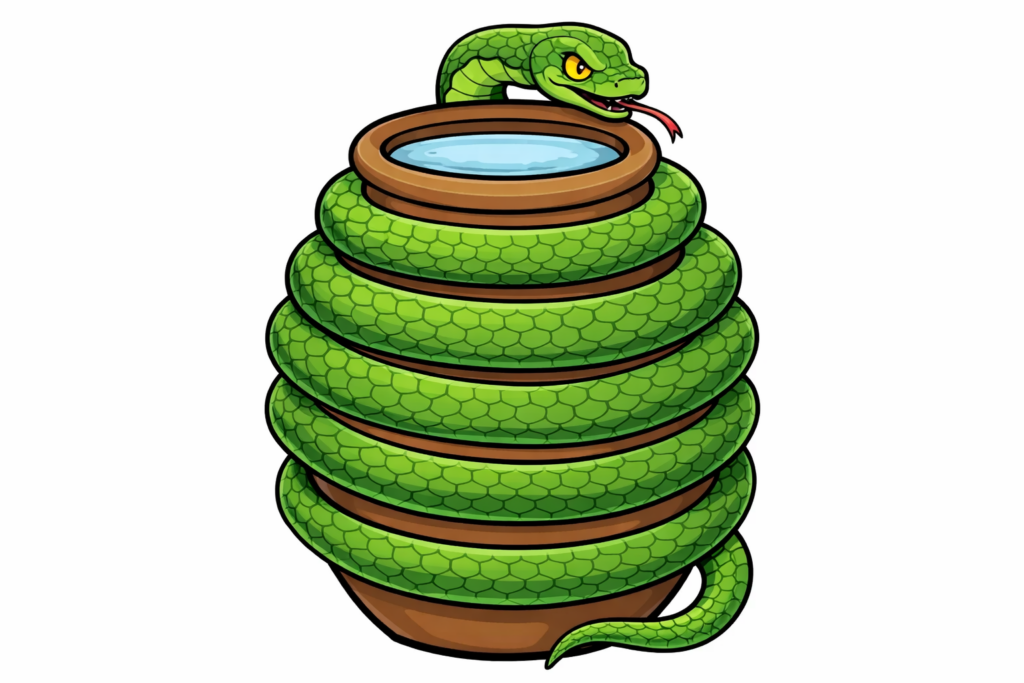 蛇は弥次郎の隠れた水がめを見つけ、その周りを7巻き半。