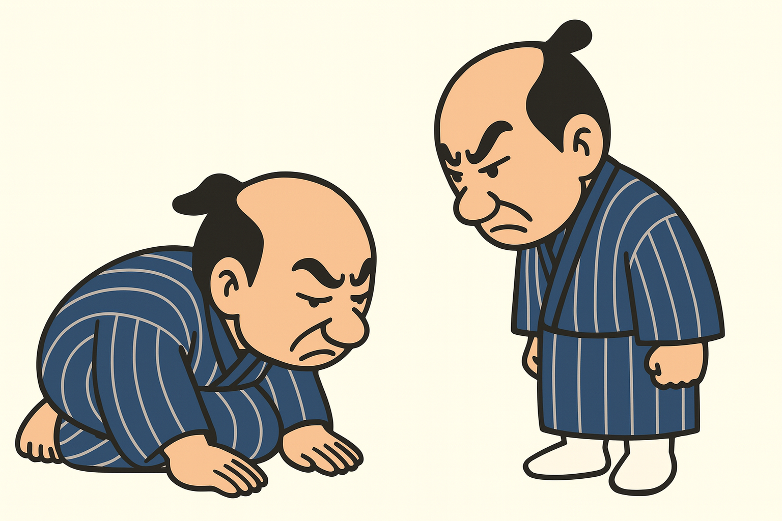 二人の商売は瀬戸物屋と包丁屋ときている 「こりゃ家中に皿や出刃包丁が飛んで面白いし、いろいろ壊れるから商売になるぞ」とほくそ笑む二人